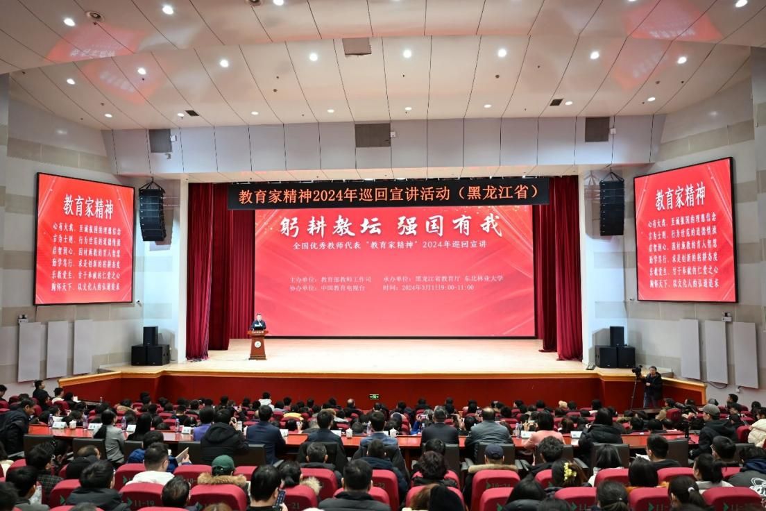 为贯彻落实习近平总书记关于弘扬教育家精神的重要指示精神,以教育家精神引领高素质教师队伍建设,3月1日上午,由教育部主办,黑龙江省教育厅协办的“教育家精神2024年巡回宣讲活动(黑龙江省)”在东北林业大学举行,我校集中组织30名教师代表参加现场宣讲活动,各学院其他教师以视频直播分会场形式收看了宣讲。