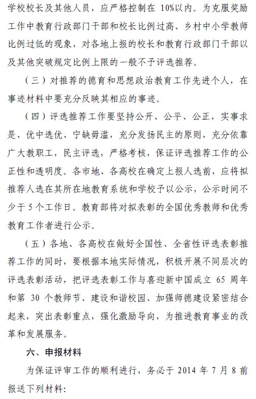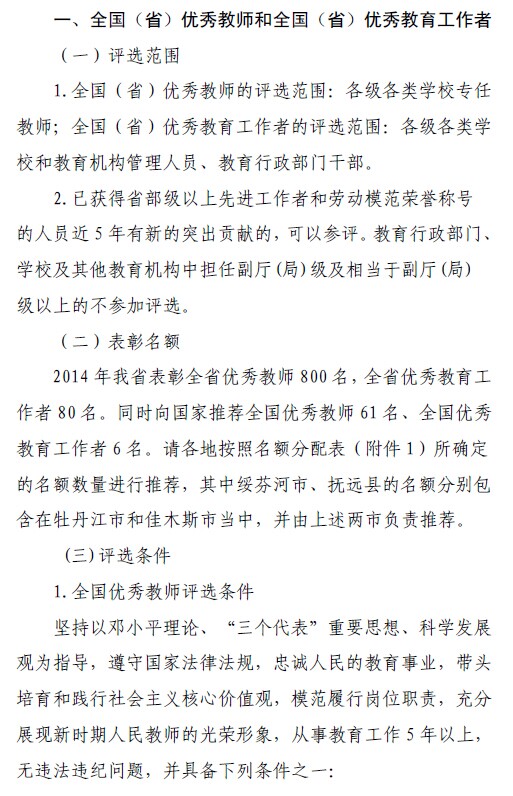 关于推荐评选2014年全国(省)优秀教师和全国(省)优秀教育工作者的通知
