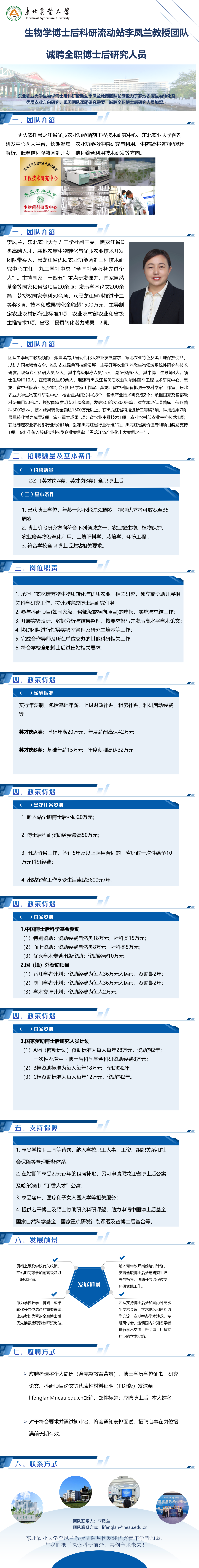 第八期:东北农业大学生物学博士后科研流动站李凤兰教授团队诚聘全职博士后研究人员